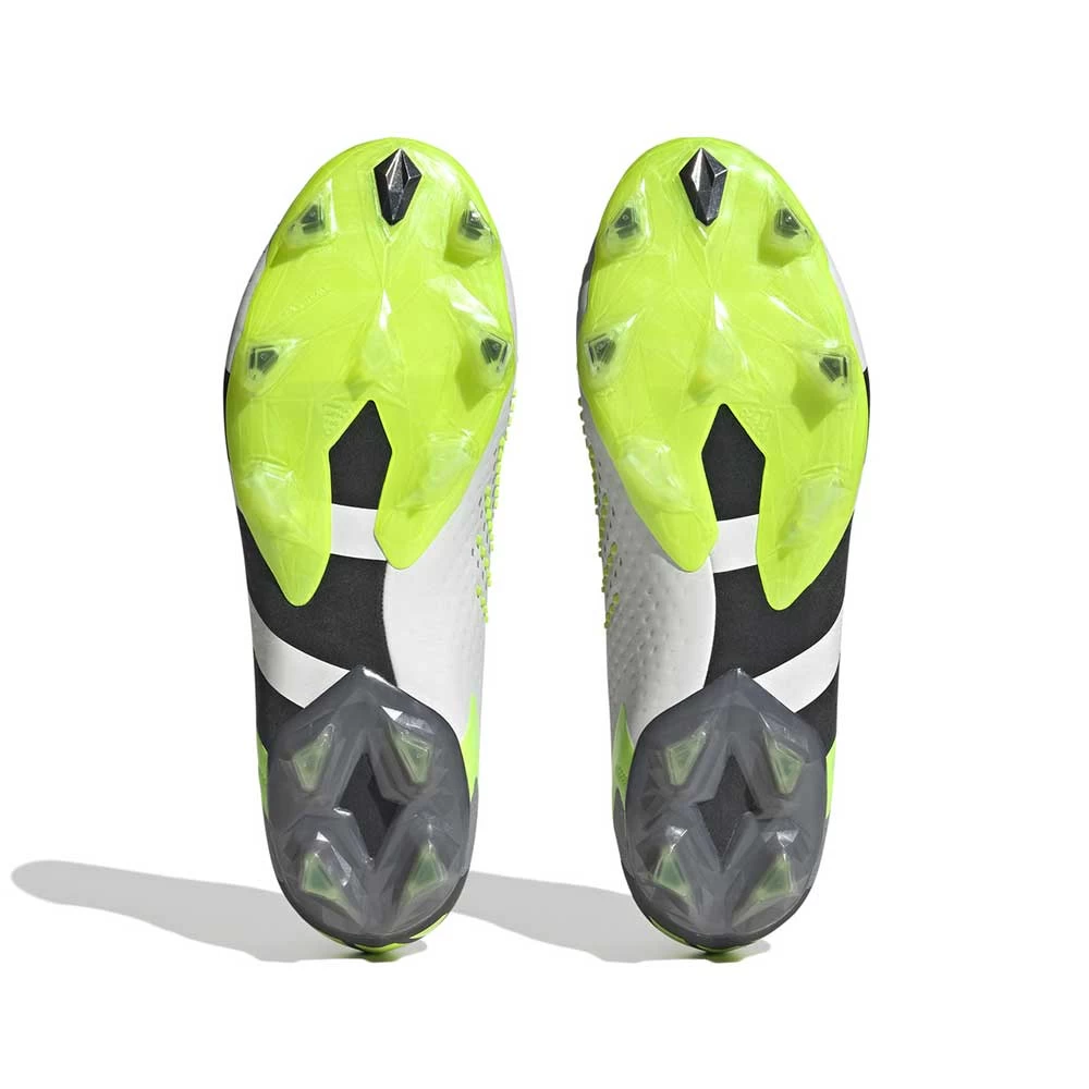 These firm ground soccer cleats have a soft HybridTouch upper with High Definition Grip rubber elements that deliver biting grip on the ball without compromising forefoot flexibility. A Power Facet in the split outsole supercharges strikes.